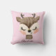 Sweet, cute and girly pastel blush pink baby reindeer throw pillow with your own custom name.