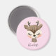 Sweet, cute and girly pastel blush pink baby reindeer magnet with your own custom name.