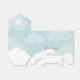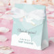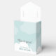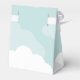 A lovely stork-themed baby shower favour box that features a lovely pink, teal blue, grey and white colour scheme. A happy stork glides by carrying a new little bundle of joy as he flies against a soft aqua blue sky that's dotted with puffy clouds. A traditional symbol is given an updated look in this thoroughly modern take on the theme with original illustration and trendy, whimsical typography.