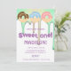 Sweet doughnuts, rainbow colours, sweet first birt invitation