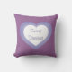 This pillow features a white heart outlined in lavender, overlaid by the customisable template text "Sweet Dreams" on one side and a repeating pattern of lavender fade hearts on the reverse side. Click "Customise it" to re-position/re-size hearts, personalise text and change background colour. Choose font style, size, and colour.