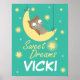 A sweet dreams design for babies or small children. A wish for peaceful sleep in cartoon style with a cute owl and the moon. Name must be personalised according to preferance. A great custom gift for a special occasion.