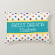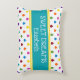 This adorable Sweet Dreams pillow features a raindrop pattern in bright rainbow shades of red, orange, yellow, green, blue, purple, pink and teal on white. Personalise the matching teal and yellow stripe with your choice of special text.