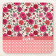 Colourful and fun pattern features dusty pink dots border, pretty pink and red roses pattern block and text band to personalise with name or greeting in modern white script font.