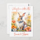 Send a friend or family member Easter blessings with this sweet vintage bunny rabbit and flowers postcard. Pretty peach, coral, pink and sage green garden of flowers.
