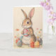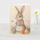 Vintage inspired Easter bunny illustration with colorful Easter eggs and sweet flowers. The greeting inside is a lovely vintage script reading simply Happy Easter!
