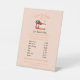 Showcase your sweetest offerings with this customisable pedestal dessert menu sign! Featuring a soft pastel background and a charming dessert illustration (which you can replace with your own logo), this tabletop sign adds a warm, professional touch to your bakery, café, or dessert table.