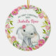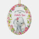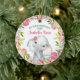 Baby's first Christmas ornament features a sweet little watercolor elephant with a pretty watercolor floral wreath. Personalize with your baby name and date. A cute keepsake gift for baby's 1st Christmas.