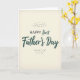 This card features a warm off-white background with a gentle paper-like texture that feels close and caring, like a quiet moment shared between loved ones 👨. Centred on the front, the phrase “first Father’s Day” appears in a smooth, flowing letter style in deep teal, giving the words a calm, affectionate presence. Above it, “HAPPY” sits in uppercase letters in the same teal, smaller but firm, creating a supportive headline. The spacing between the two lines leaves breatheable room, letting the message feel unhurried and tender rather than loud. Small, irregular clusters of muted grey dots are sprinkled lightly near the top and bottom, like soft confetti that frames the words without stealing attention. The restrained palette and simple layout suggest a steady, caring bond, like a partner’s gentle glance or a friend’s proud nod 👔. The teal lettering stays centred, while the grey dot accents hover in loose groups above and below the main text.