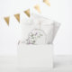 Delicate floral arrangements, subtle arch outlines, and modern sans serif fonts in a colour palette of lilac, mauve and soft sage green, combine with black and white backgrounds to give the pieces in this elegant wedding suite a moody, romantic ambience. The favour bag shown here provides a template to easily add your own 'thank you' message, names and wedding date. Search ID998 to see the complete collection.