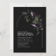 Delicate floral arrangements, subtle arch outlines, and modern sans serif fonts in a colour palette of lilac, mauve and soft sage green, combine with black and white backgrounds to give the pieces in this elegant wedding suite a moody, romantic ambience. This wedding invitation features an arched floral border and a template to easily add all your event details. Search ID998 to see the complete collection.