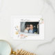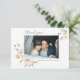 Our lovely thank you wedding photo card is designed with shades of pink, green, orange flowers, berries and leaves with a beautiful calligraphy script. The reverse side is blank to write a message with a small flower on the bottom. Kimberly Brett.