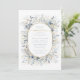 This elegant wedding suite features delicate floral and foliage designs in a dusty blue and gold colour scheme for a cohesive and stunning wedding theme. The coordinating Rehearsal Dinner invitation shown here showcases a sweet floral pattern and trendy arched frame, adding a touch of romance and sophistication to the overall look. Add your event details easily using the provided template. Search ID1045 to see other products in this wedding design set.