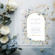 This elegant wedding suite features delicate floral and foliage designs in a dusty blue and gold colour scheme for a cohesive and stunning wedding theme. The stunning acrylic invitation shown here showcases a sweet floral border and trendy arched shape, adding a touch of romance and sophistication to the overall look. Perfect for couples looking for a timeless and beautiful design for their special day. Add your required event details using the provided template. Search ID1045 to see other products in this wedding design set.