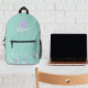 This beautiful backpack is decorated with a flower field, in sweet pink and white tones, on a light green background.