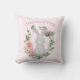 Bring a smile to your child's face when they see this adorable pink baby blanket. This design features a soft pink background with an oval shaped floral wreath of pink roses and green botanical leaves. A sweet grey bunny sits in the middle of the flowers. Personalise this cute pink pillow for a baby girl's nursery with the name of your choice.