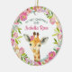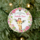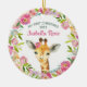Baby's first Christmas ornament features a sweet little watercolor giraffe with a pretty watercolor floral wreath. Personalise with your baby name and date. A cute keepsake gift for baby's 1st Christmas.