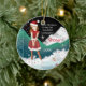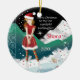 A lovely young girl on skates is illustrated standing on ice on the front of this beautiful Christmas ceramic ornament for Goddaughter. She is wearing a short red skirt and Santa hat, with imitation white fur. Behind her is a fabulous mountain of white ice set against a black sky. Tiny red and green stars are sprinkled here and there and a narrow Celtic border runs down the left side. You can personalise the front with your Godchild's name and the year, and on the back over another beautiful scene of snow and ice, you can add your own personal greeting. A gorgeous, trendy, Christmas ornament that your Goddaughter will treasure forever.