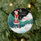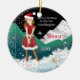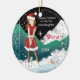 A lovely young girl on skates is illustrated standing on ice on the front of this beautiful Christmas ceramic ornament for Granddaughter. She is wearing a short red skirt and Santa hat, with imitation white fur. Behind her is a fabulous mountain of white ice set against a black sky. Tiny red and green stars are sprinkled here and there and a narrow Celtic border runs down the left side. You can personalise the front with your Granddaughter's name and the year, and on the back over another beautiful scene of snow and ice, you can add your own personal greeting. A gorgeous, trendy, Christmas ornament that your Granddaughter will treasure forever.
