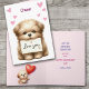 Here's an adorable Valentine's Day card for that sweet grandson! The front features a cute fluffy puppy holding a sign that says "love you". Your child's name is at the top, surrounded by pink hearts. The inside of the card is pale pink, with another image of the puppy. There are four text fields in pink and lavender. All the text is easily customized to say anything you'd like, so you may easily customize this for a son, nephew, or any child.