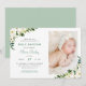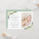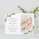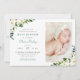 Sweet Greenery Floral Baby Girl Photo Baptism Invitation
