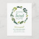 Affordable custom printed moving announcement postcards personalised with your family's new address and contact info. This pretty botanical design features a watercolor wreath of greenery and leaves surrounding Home Sweet Home quote. Use the design tools to customise the text, edit the fonts and colours or add your own photos to create a one of a kind new address card for your family or business.