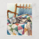 Sweet Grey Cat Sleeping on a Quilt Postcard