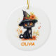 Sweet Halloween Cat Custom Name Ceramic Tree Decoration
