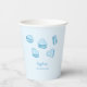 Sweet and cute Valentine theme birthday party paper cup featuring illustration of blue macarons in heart shaped.