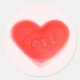 Cute design featuring a gummy candy heart with 'love' written on it in shades of red and pink on a pink background. Sticker with a customisable design for you to personalise with your own text, pictures and ideas. Created using an original photograph and digital techniques by Jess Perry.