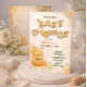 A sweet and charming honey bee–themed baby shower invitation background featuring soft golden tones, delicate spring flowers, and a cute smiling bee illustration. This warm and joyful design is perfect for baby shower invitations, creating a lovely and welcoming atmosphere for celebrating a new arrival.