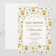 A warm and charming design featuring delicate honey bees, golden beehives, and soft botanical greenery arranged in a light, airy pattern. The gentle neutral palette paired with the elegant arched layout creates a sweet and inviting aesthetic that feels both playful and refined, perfect for a nature-inspired baby shower with a soft, storybook touch.