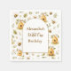 A warm and playful design featuring delicate honey bees, golden beehives, and soft botanical greenery arranged in a light, airy pattern. The neutral tones paired with the elegant arched layout create a sweet yet refined aesthetic, perfect for a “Wild One” first birthday with a charming, nature-inspired feel that is both fun and beautifully styled.