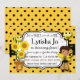 This adorable invitation is perfect for that little sweetie in your life! Colourful design and completely customisable. The invite has a full colour black and yellow polkadot back. Add your name, address, rsvp information and change the age of your child. Look for other matching items in our store such as stickers, envelopes, t-shirts and more!