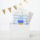 For a sweet ice cream themed 1st birthday party with a large blue ice cream cone on a background of white and pastel blue stripes. Personalise and add the name of the child and age. The text: Thank you for coming!