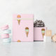 A sweet ice cream cone pattern on a pink background for a cute birthday wrapping paper. The design shows ice cream in lemon yellow, strawberry pink, orange, vanilla, mint green and chocolate brown. You can change the background colour by clicking on customise it.