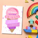 These cute birthday party invitations feature a pink colour ice cream cone illustration with polka dots background. Personalise the birthday party invites by adding your child's name, age, and party details.