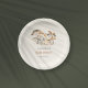 Baby Shower paper plates featuring a group of adorable watercolor jungle animals (elephant, giraffe, meerkat and leopard) and trees in earthy tones. Click the "Personalise" button to edit with your own information.