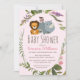 Sweet Jungle Safari Animals Pink Girl Baby Shower Invitation