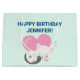 Happy Birthday gift bag with an adorable graphic illustration. A white kitty cat with a cute paw print image on her fur. Sleeping peacefully. A big pink heart behind her and some little stars too.