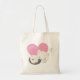 A canvas tote bag with an adorable graphic illustration. A white kitty cat with a cute paw print image on her fur. Sleeping peacefully. A big pink heart behind her and some little stars too.