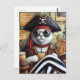 Sweet Kitty Pirate with coffee in a Antique Shop Postcard
