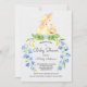 Cute watercolor animals baby shower featuring a adorable mum lamb with her baby with leaves & blue flowers set on a white burlap background. Perfect for a boys baby shower,