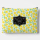 Cute lemon and leaf patterned accessory pouch with elegant personalised label.