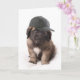 Blanco card with a sweet Leonberger dog puppy card wearing a cap.