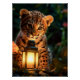 A cute leopard boy in the jungle. A lantern in front of him illuminates him and his surroundings. A great motif for the children's room as well as the hall or living room.