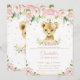 Sweet Lion Cub Blush Pink Floral Gold 1st Birthday Invitation