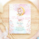 A sweet little bunny is on the way. Design made for a Girl's Baby Shower with pink watercolor, delicate flower illustrations, and a sweet little bunny!