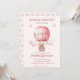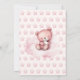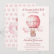 A cute teddy bear in a pink hot air balloon flies through the clouds with a couple of stars overhead under the announcement “A Sweet Little Girl is on the way.” All text can easily be changed to your information.