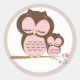 Sweet Little Mama & Baby Owl on a Branch Classic Round Sticker
